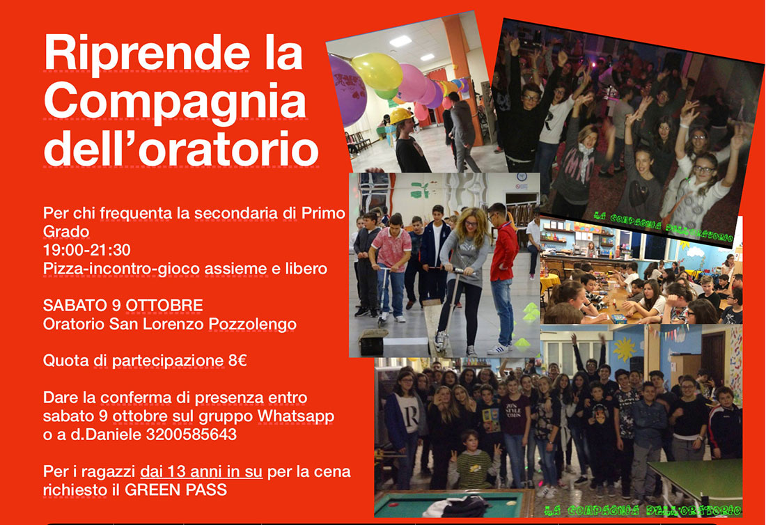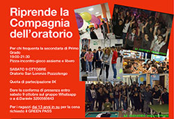 Nel mese di ottobre riprende la proposta rivolta ai ragazzi della secondaria di primo grado e animatori, di passare insieme due sabati sera (il secondo e il quarto) per crescere nell’amicizia e nella vita.