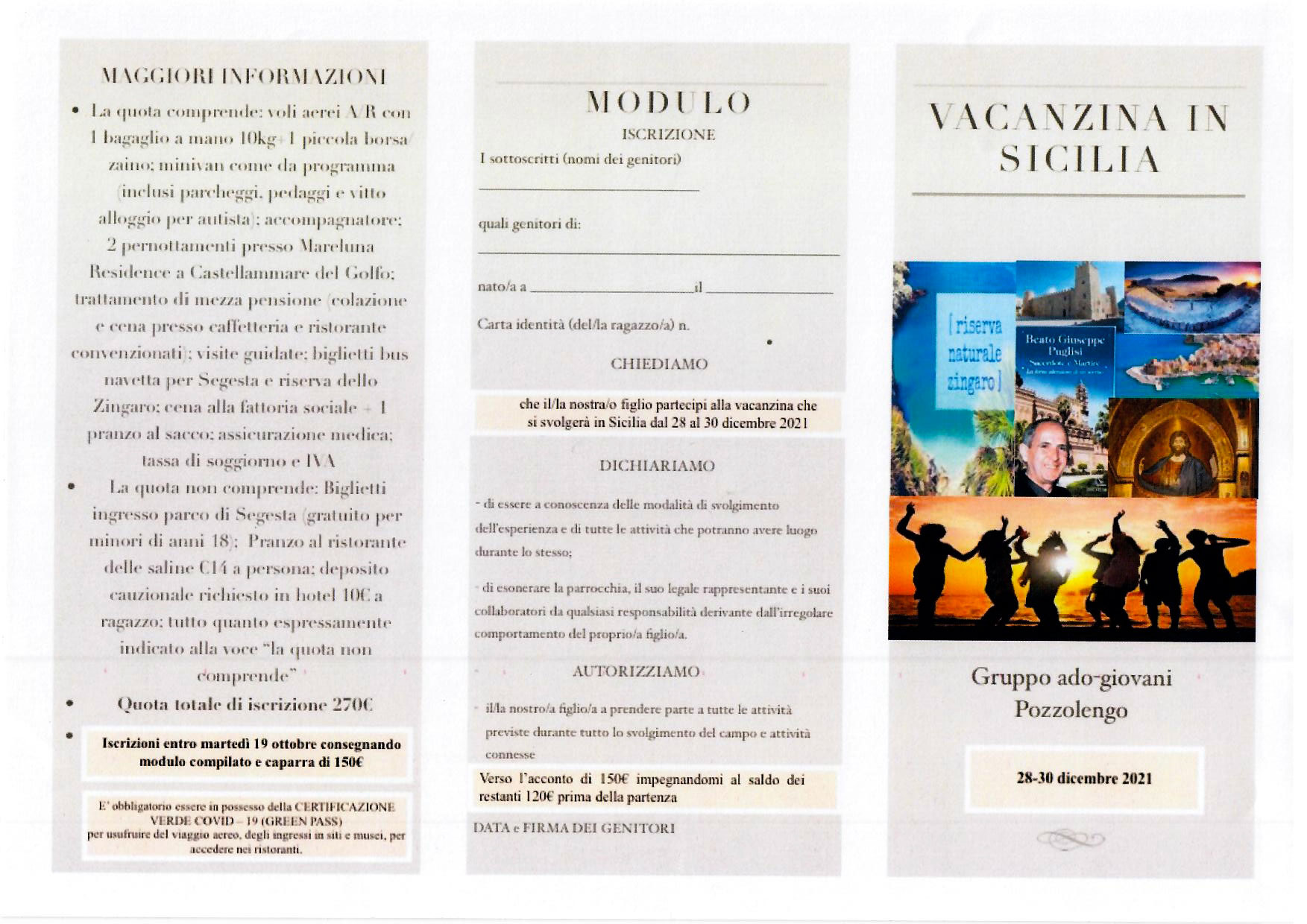 La vacanza sarà dal 28 al 30 dicembre in una bellissima terra della nostra Italia: la Sicilia.
